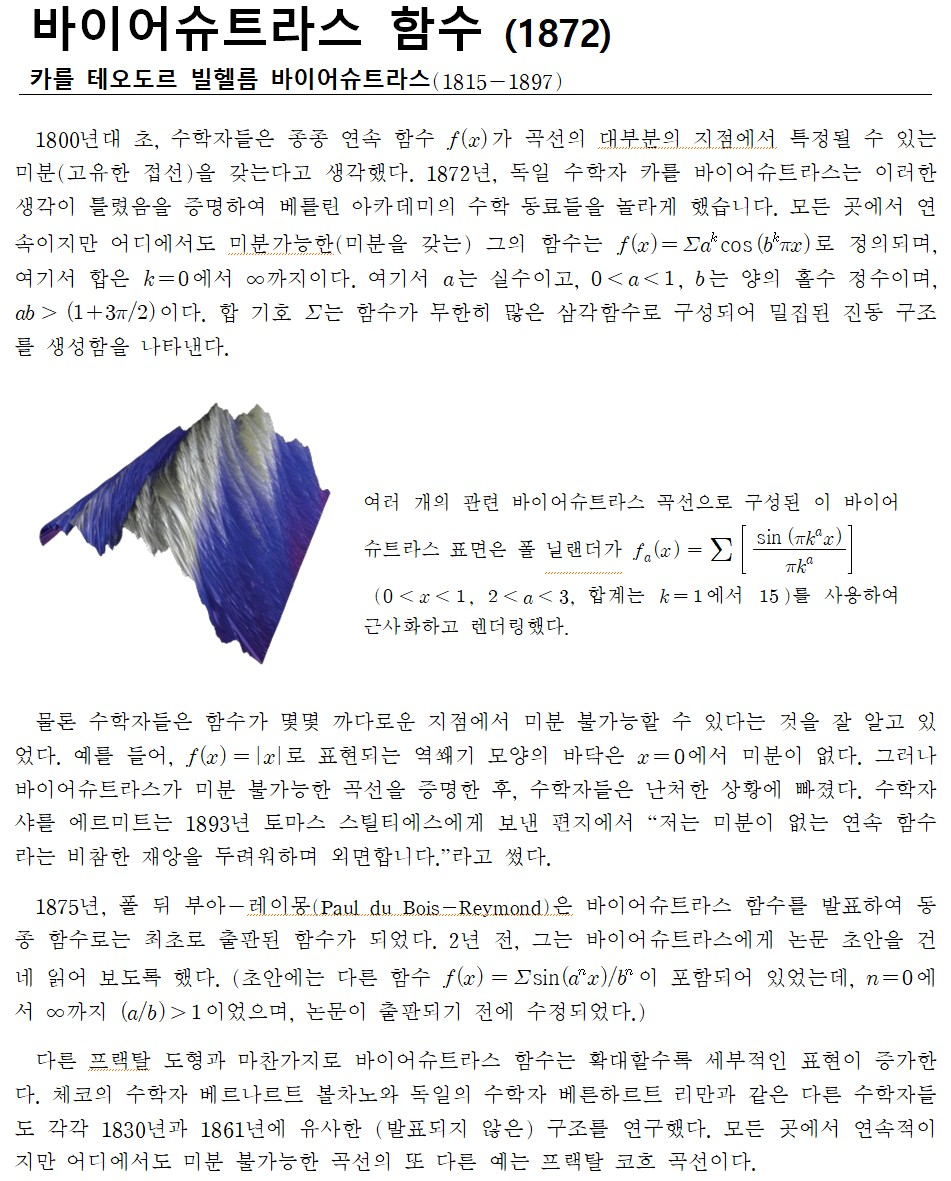 수학책: 피타고라스부터 57차원까지 No.100 바이어슈트라스 함수 (1872) 본문
