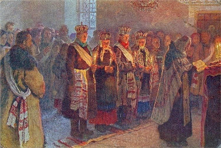Andrei Ryabushkin - Waiting for Bridal Couple's Return from a Church in Novgorod Province.