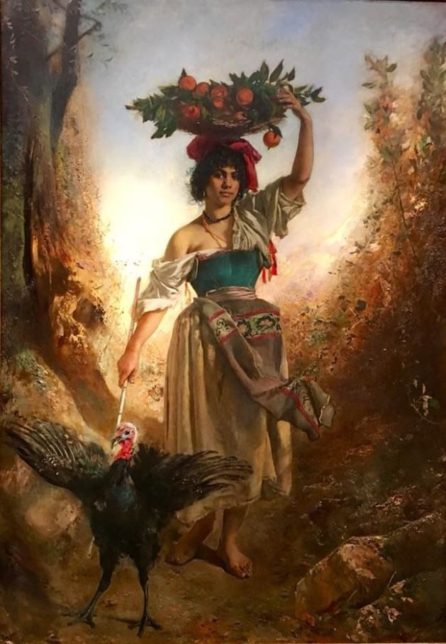 Anton Romako - Peasant Girl with Turkey
