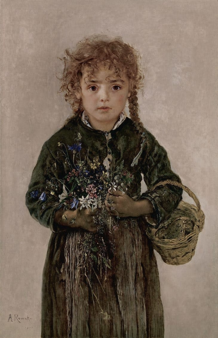 Anton Romako - Peasant Girl with Bread Basket and Alpine Flowers