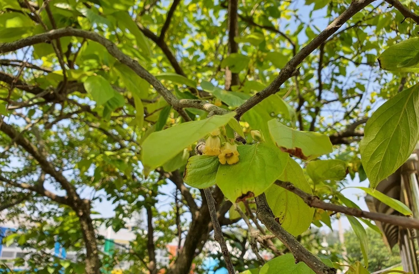 감나무는 5~6월에 황백색의 꽃이 피며,