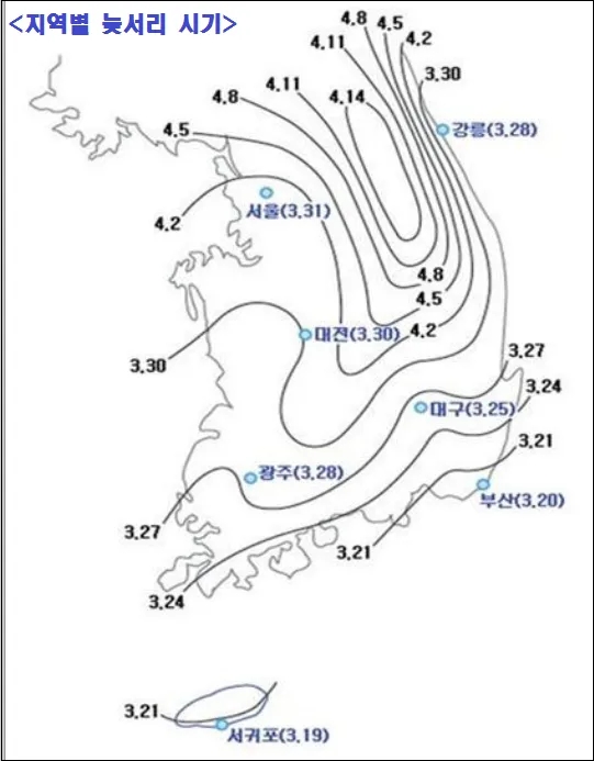 지역과 해발고도에 따라 다르고 매년 달라진다.